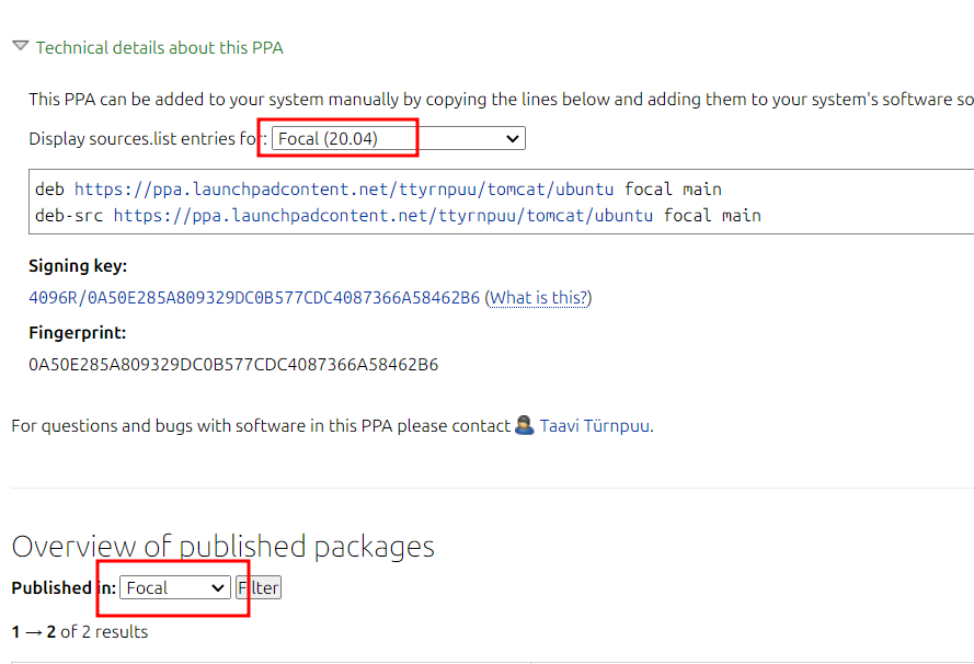 https://launchpad.net/ubuntu/+ppas로 가서 tomcat8을 검색하기