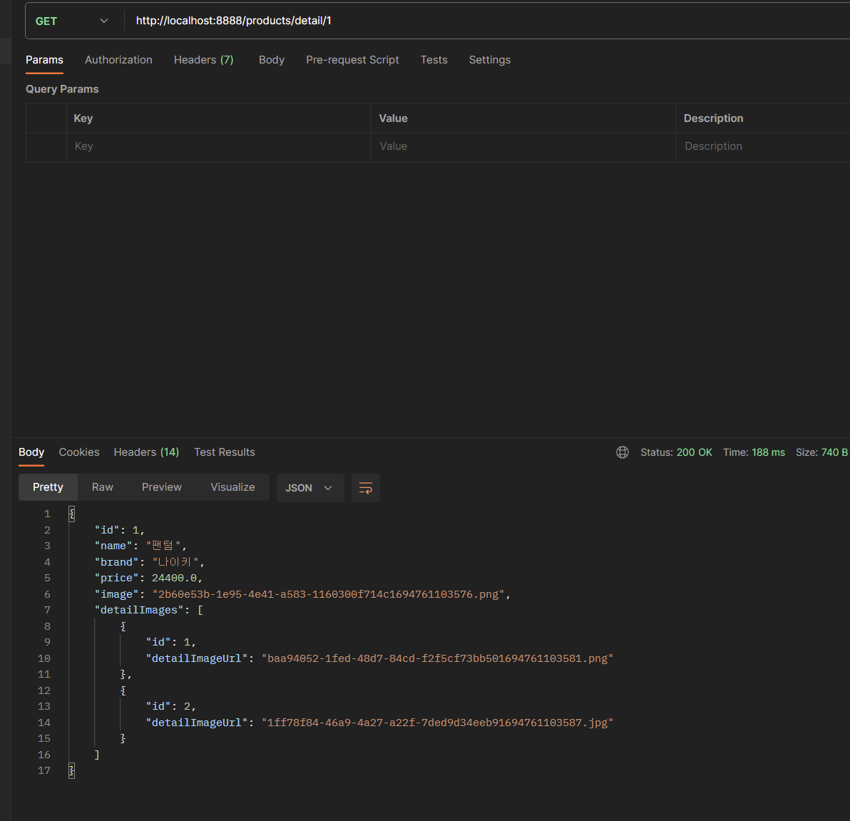 detailImages가 자꾸 {}, {} 이렇게 갯수는 맞는데 빈객체를 반환하였다. Fetch.EAGER로 해도 해결이안된다. 순환 참조는 주로 양방향 관계에서 발생하는 문제입니다. 예를 들어, Product가 ProductDetailImage 리스트를 참조하고, 반대로 ProductDetailImage가 Product를 다시 참조할 때 이러한 순환 참조가 발생할 수 있습니다. Jackson은 이러한 순환 참조를 처리하지 못하며, JSON 직렬화 과정에서 문제가 발생합니다. 다음 방법 중 하나를 사용하여 순환 참조 문제를 해결할 수 있습니다: @JsonIgnore: 이 어노테이션은 특정 필드의 직렬화를 방지합니다. 이를 사용하면 JSON 출력에 해당 필드가 포함되지 않습니다. 예를 들어, Product..