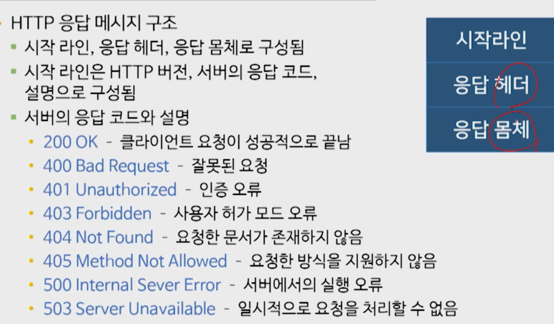 그다음 요청메시지를 보낼수 있고 요청에 대해 서버는 클라이언트에 응답메시지를 만들어 보내고 네트워크 연결 끊김