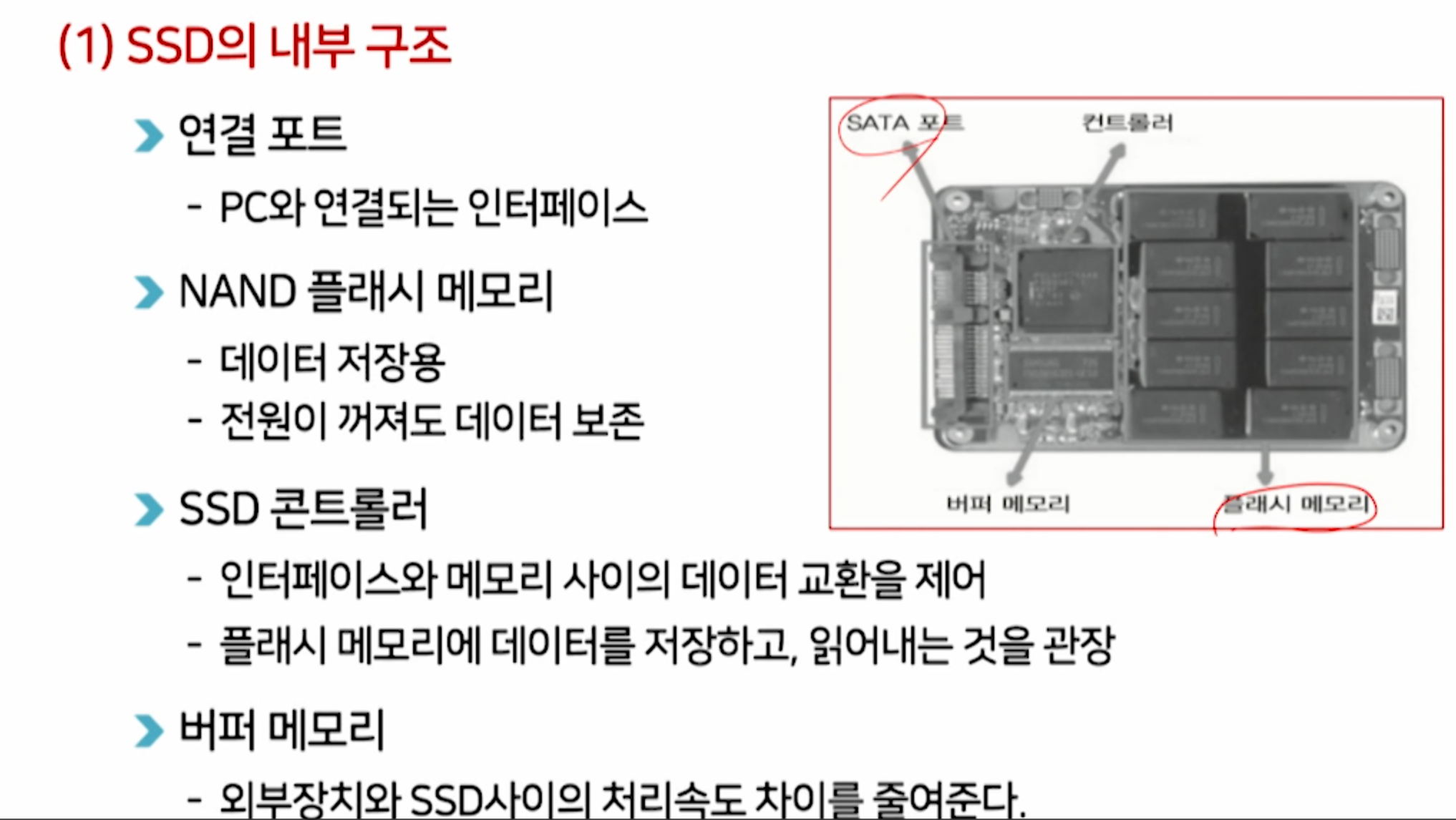 - 주기억장치에 비해 가격이 저렴하고 용량이 크지만 자료의 전송속도는 느림