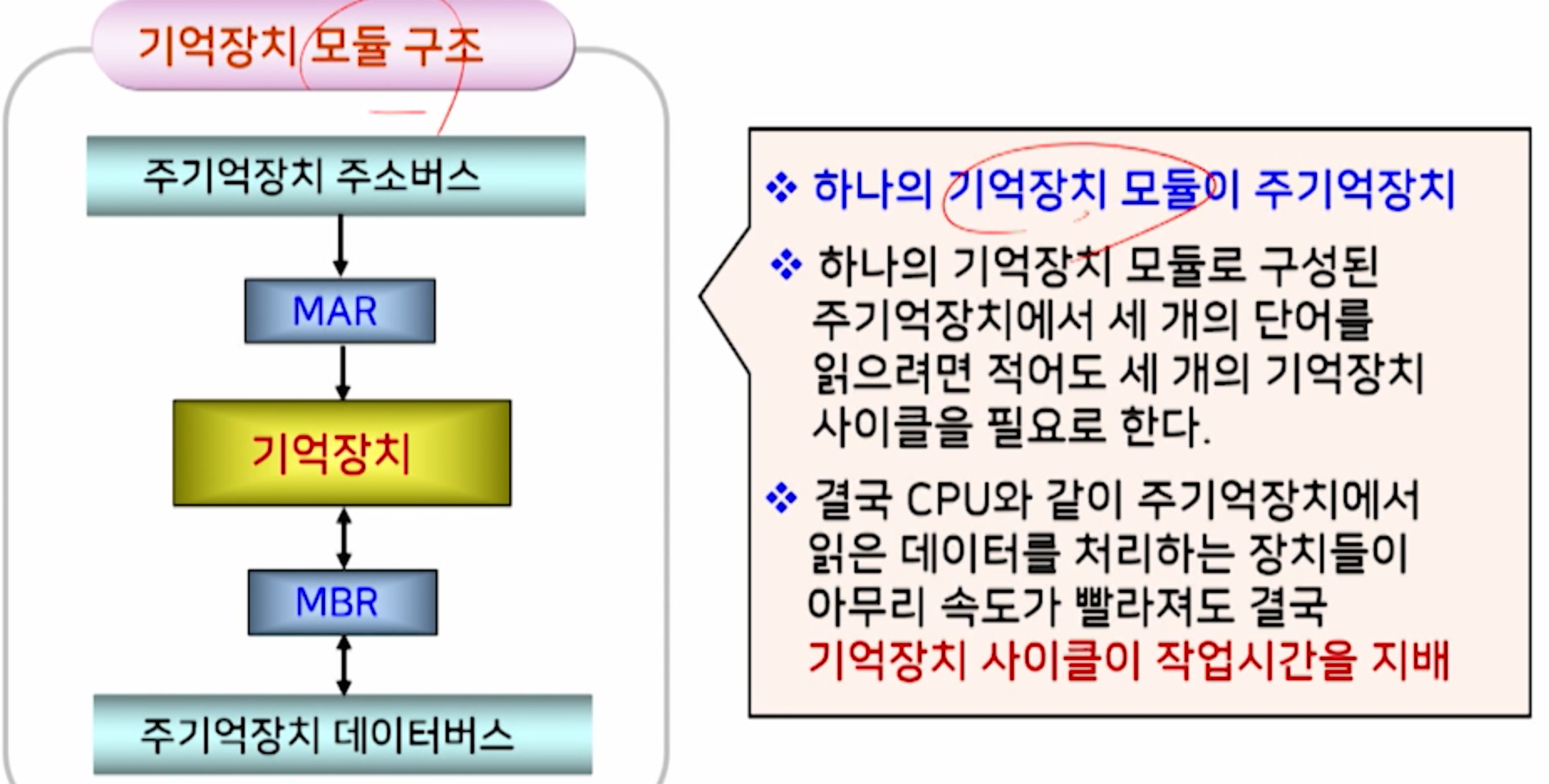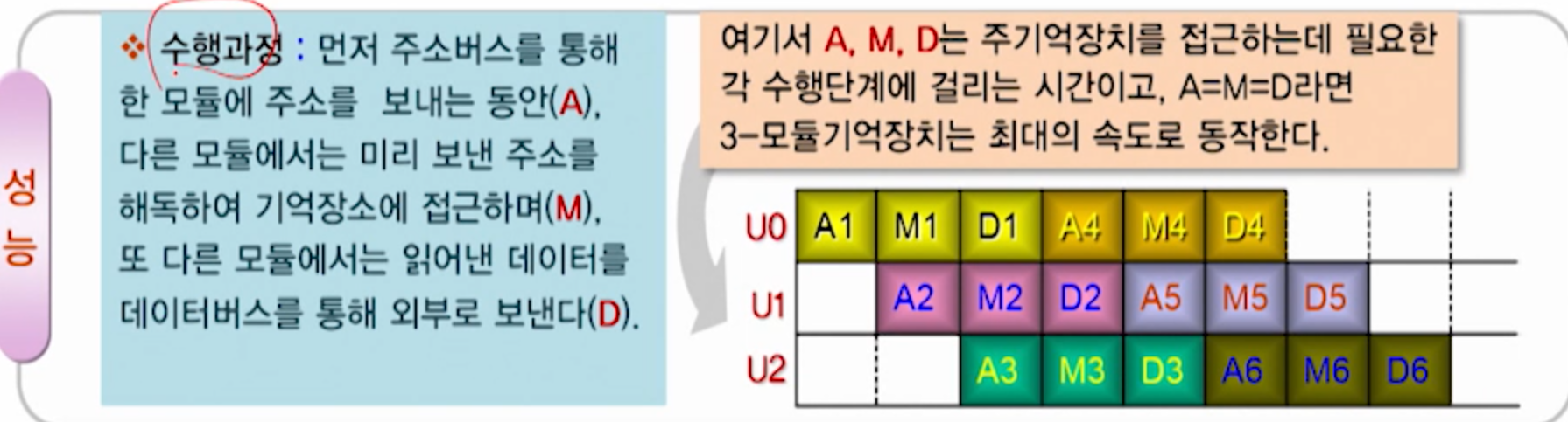 - 이런동작이 동시에 이루어져 기억장치의 대역폭을 높일 수 있다.
