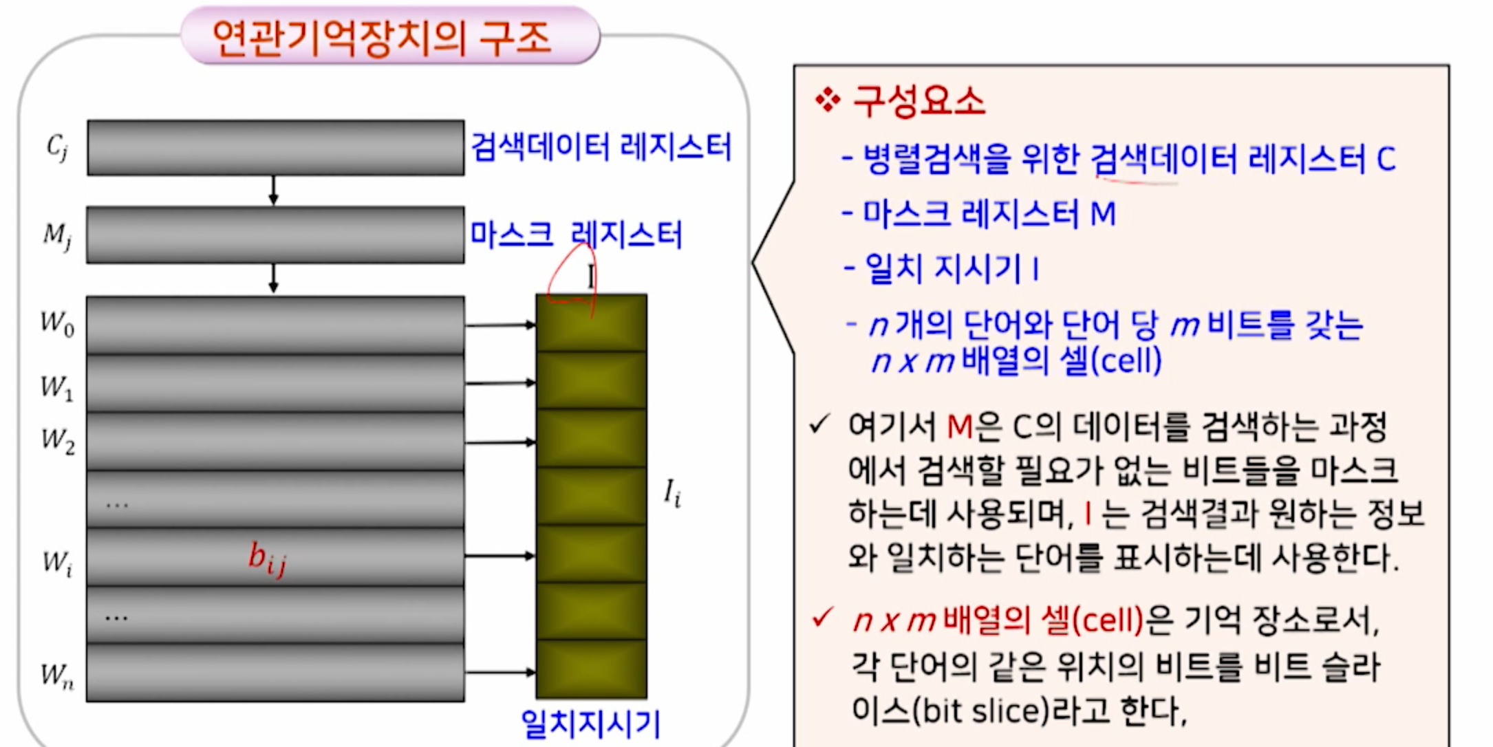 - 연관 기억장치의 기억소자들은 병렬 판독회로가 포함되기 떄문에 가격이 매우 비쌈