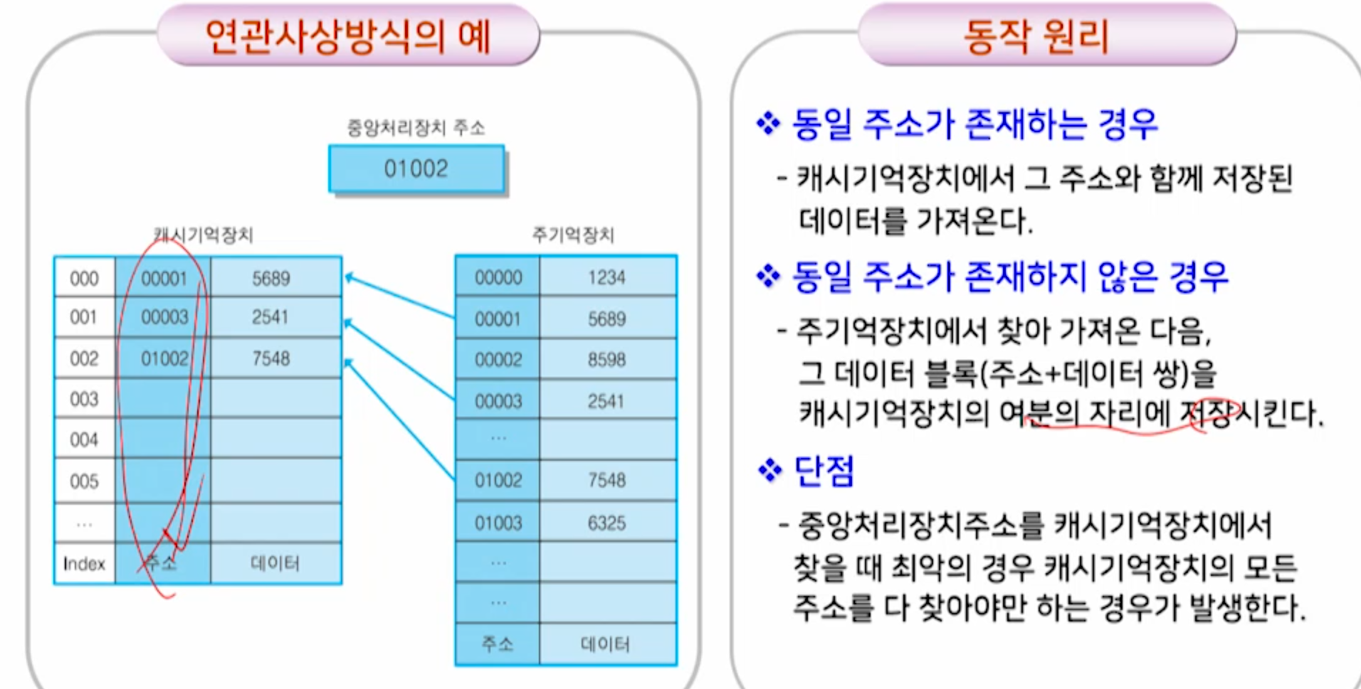 - 캐시기억장치에 데이터블록을 저장할때 데이터와 그 데이터의 주기억장치 주소도 함께 저장하는 방식